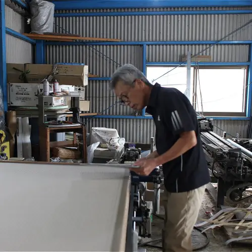 昔は、和風住宅だったのでかなりの需要がありましたが、最近は洋風住宅が主流で、畳自体の需要が減少しています。畳自体の値段も2.5倍位高くなっているため需要もあまり望めません。お寺の丁寧な仕事が要求されるケースを除き、一部海外の裕福層の需要もありますが、なかなか津山では受注出来る機会もなく販路開拓も難しいですね。